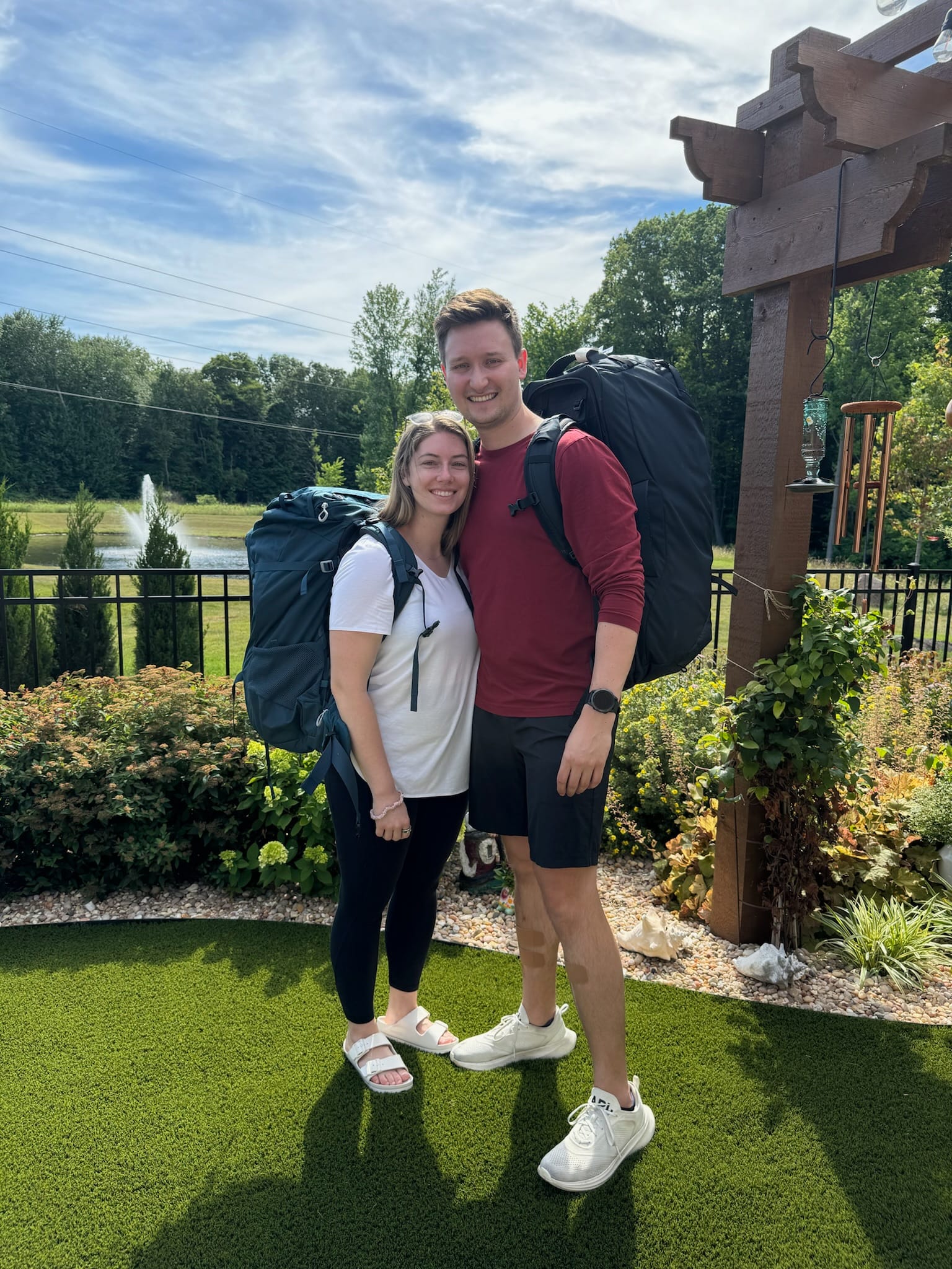 Tyler and Makenna: We have a shared answer on this one. It was Tyler. He packed an 80L backpack, a 40L backpack, and a 15L backpack. It’s all Osprey systems so they work nicely together, but he was hellbent on bringing accessories like a yoga mat and mini travel yoga blocks.