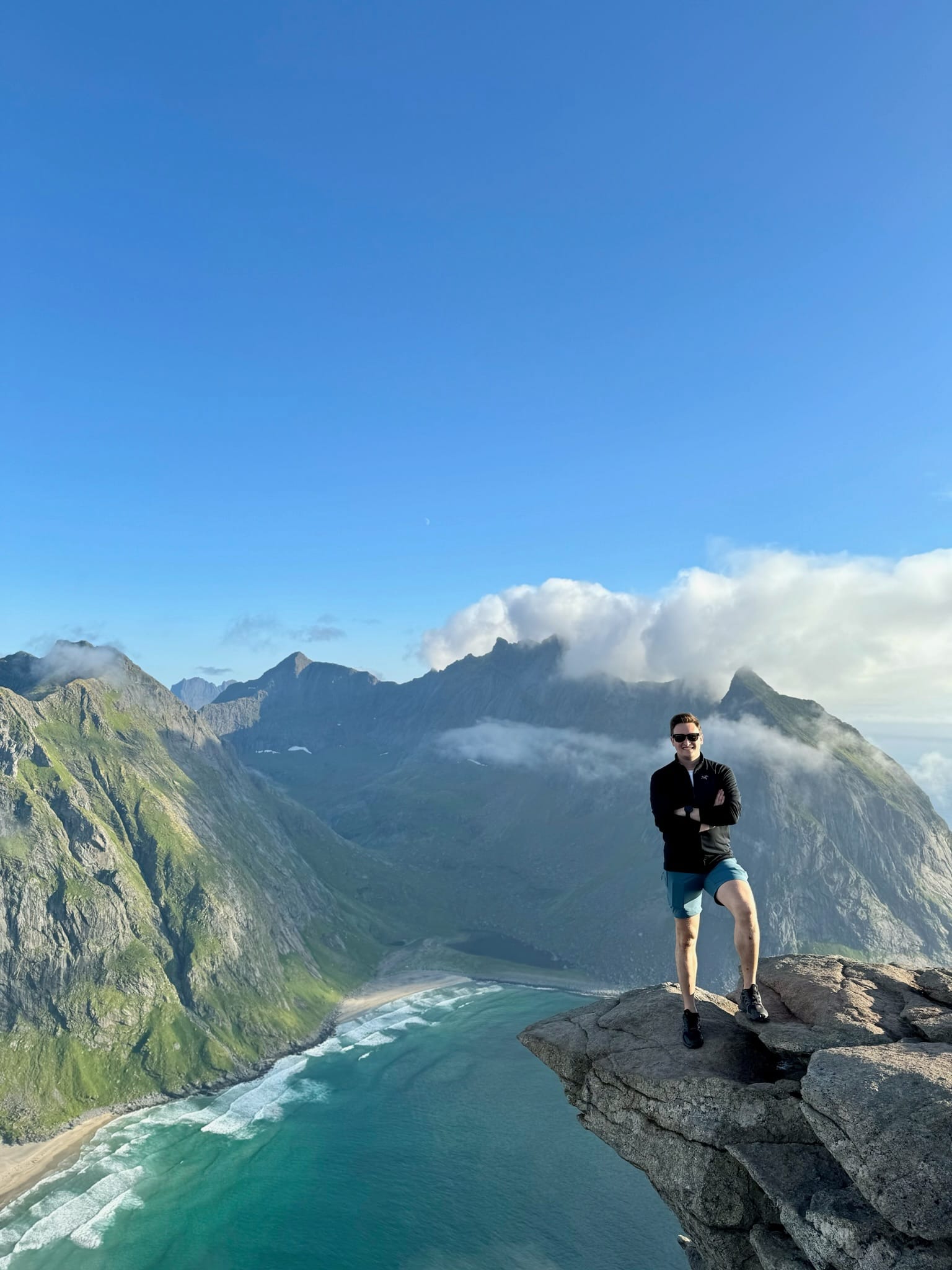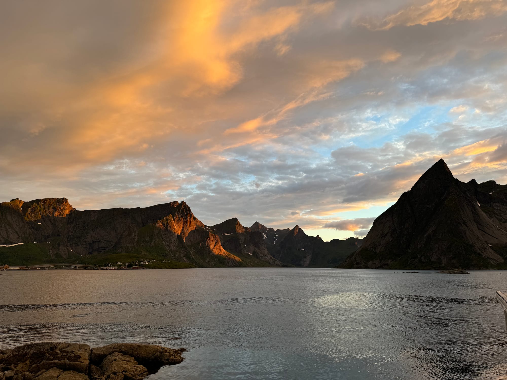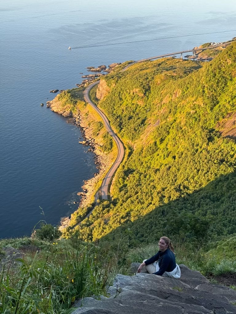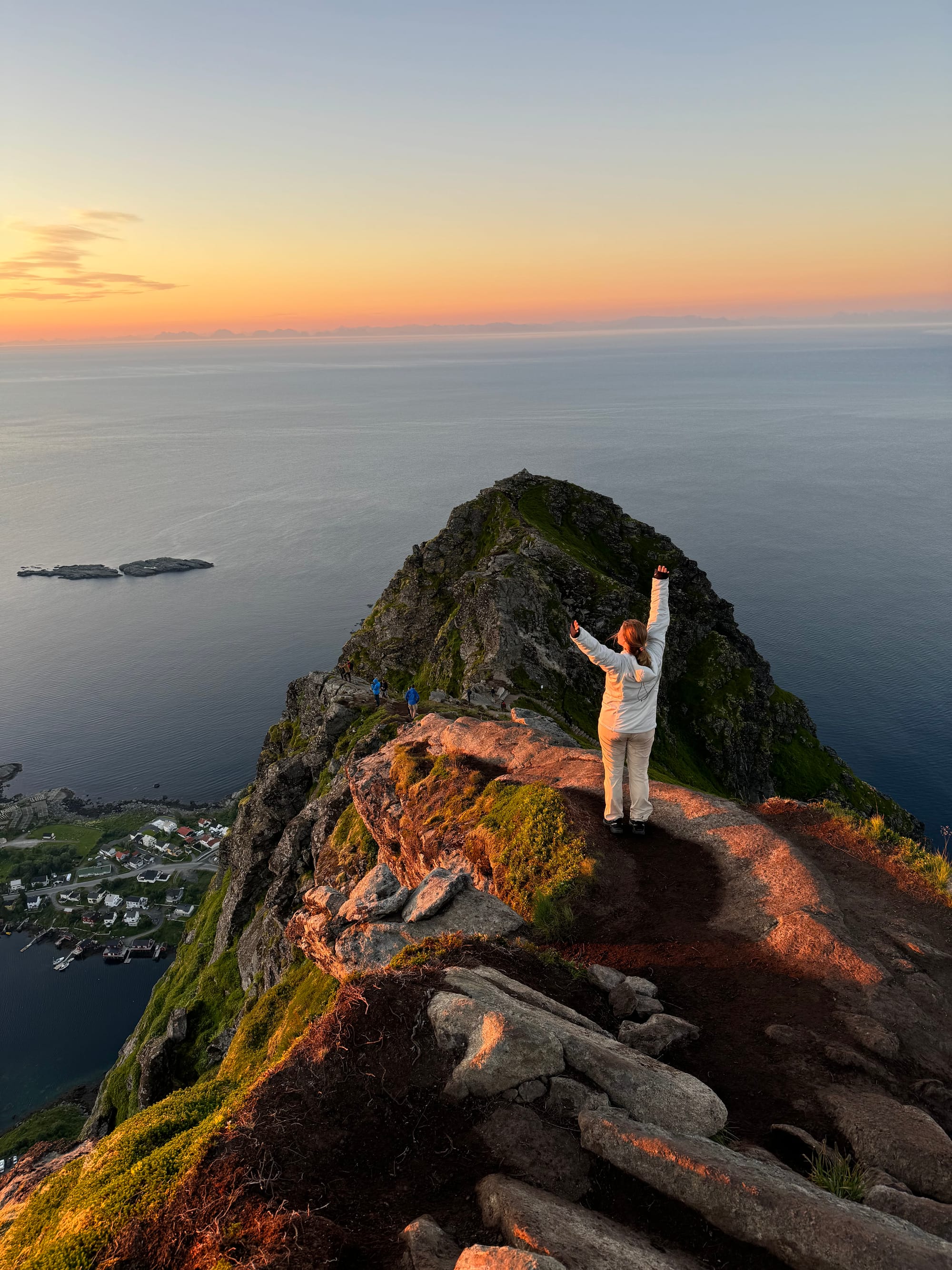While we felt invincible, the midnight hikes did eventually catch up to us and the ~3-4 hours of sleep wasn't cutting it. Our last 24 hours in Reine teased us with pristine conditions, so we went all in on maximizing our time outside. While Lofoten is beautiful, it’s still frequently rainy in the summer, and cloud coverage can sneak in for days at a time. To take advantage of the fully unobstructed sun after a full day of exploring the town, we hiked Ryten, a cliffside hike with views of pastures on one side and an Arctic beach on the other, from 6 pm - 10 pm. We drove back to our hotel to refill our water, have a pastry (read: 4 pastries), and then turned around to hike Reinebringen from midnight to 4:30 am. There was no stopping at that point; we showered, packed, and then proceeded directly to our 7 am ferry ride back to Bodø.