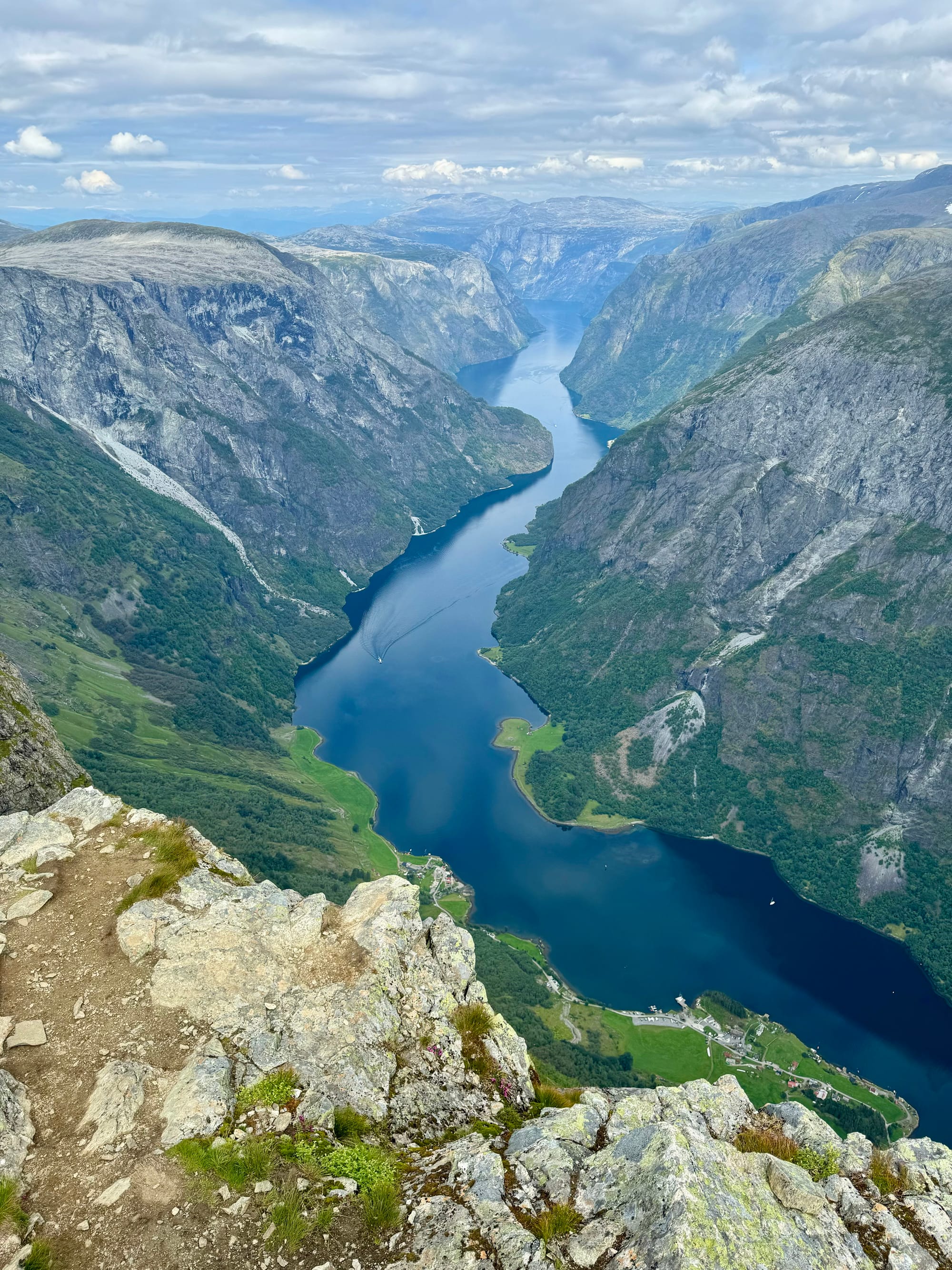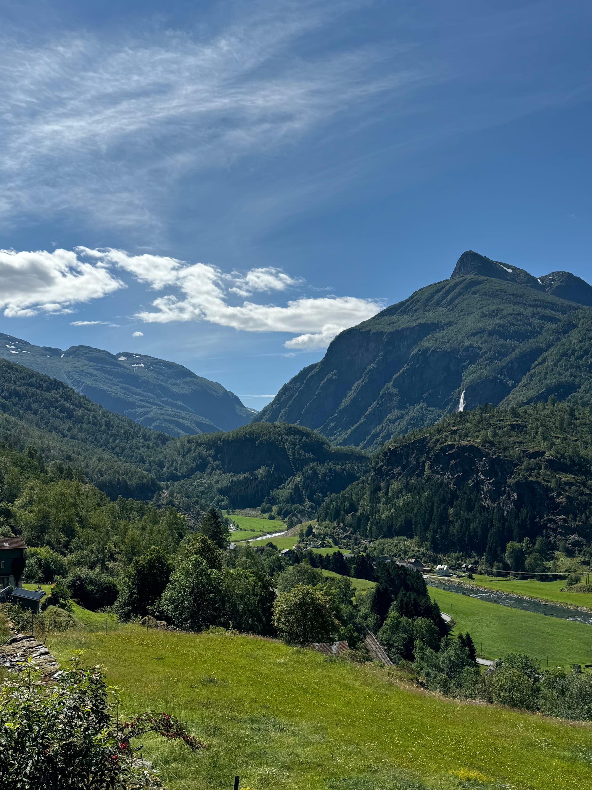 From Bergen, we hopped in our EV car rental and headed out to our first stop, Flåm. Flåm is a top contender on our list of favorite places. Not only did we have a fantastic AirBnB with a killer view, but the town also had a post-hike favorite of ours — kebabs, more baked goods, and top-notch cortados.