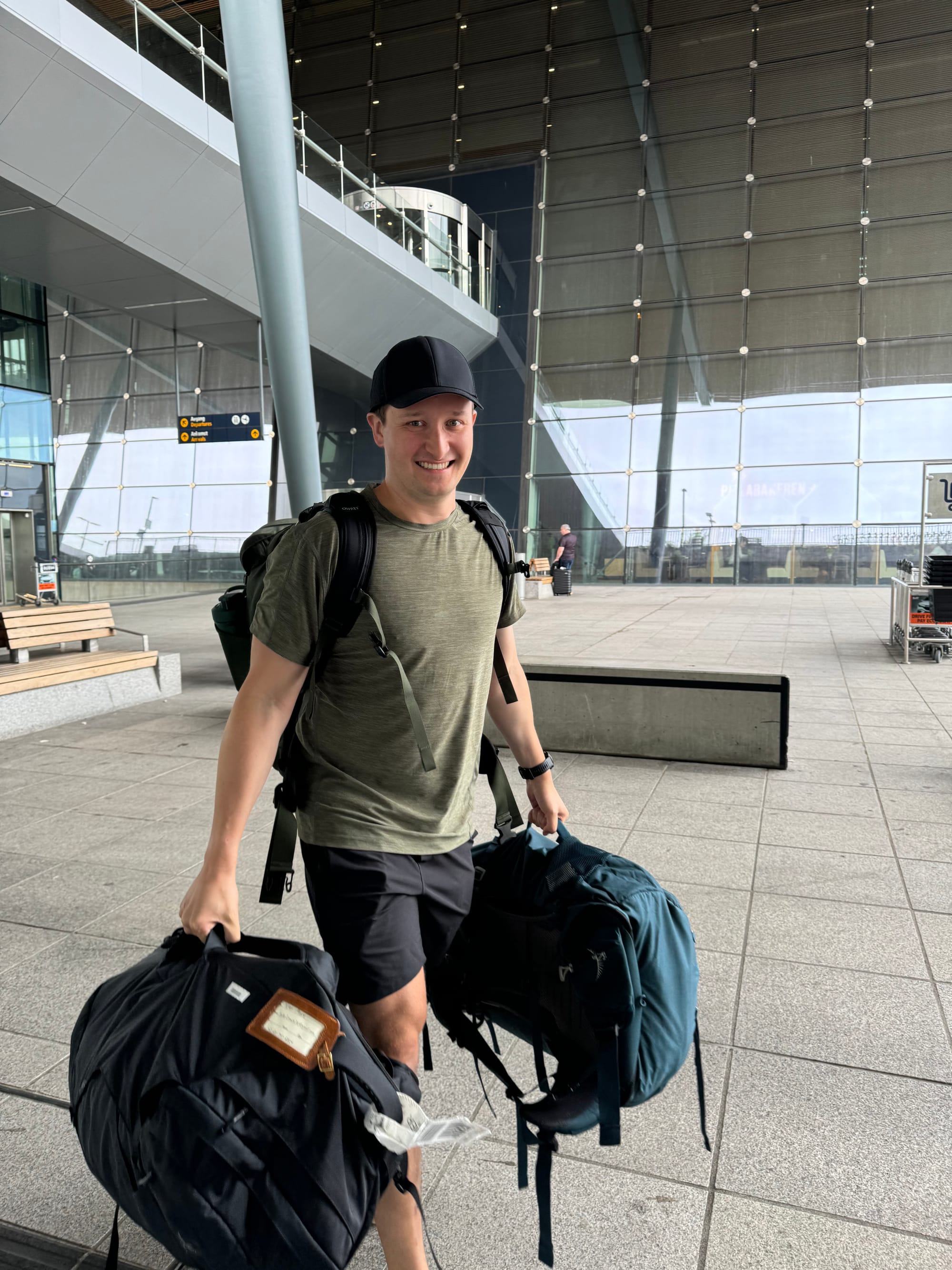Our first 8 days of this outdoor adventure were spent without our bags (hiking shoes, coats, toiletries, etc.) after the airline misplaced them between Amsterdam and Oslo. We were optimistic SAS would have our bags back in our hands 24 hours later, but that optimism quickly dwindled as we feverishly refreshed our bags’ AirTag locations but saw no changes.
