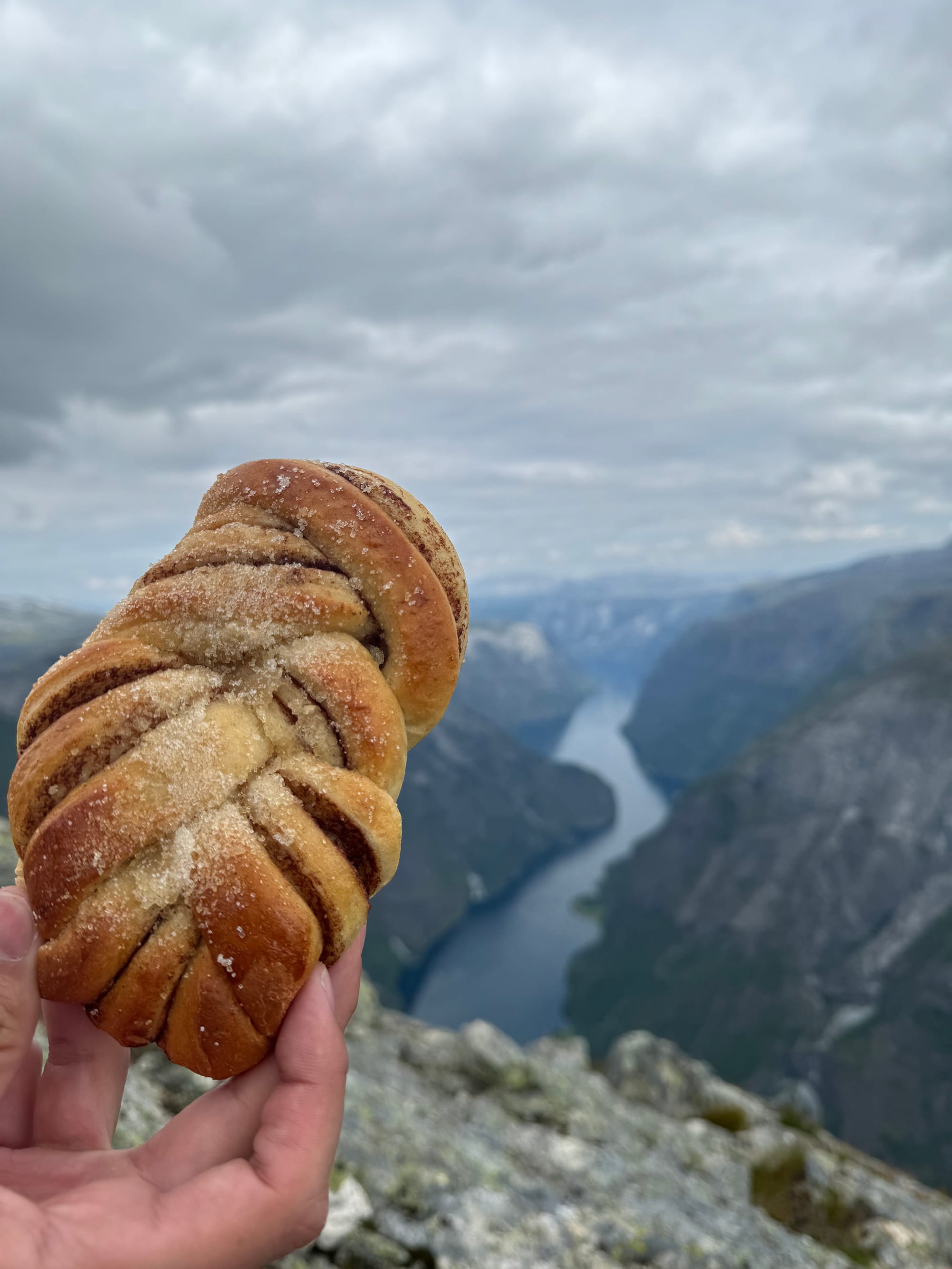 We quickly learned that baked goods are a Norwegian specialty to the extent that we’d consider them an independent food group. Cinnamon rolls, “cognac stang”, marshmallow mountains, scones, raspberry tarts, chocolate bread twists, and so much more. We’re both not particularly gluten tolerant (much to our demise), but we binged Norway’s baked goods nearly every day when we saw them at coffee shops or stand-alone markets until we were full.