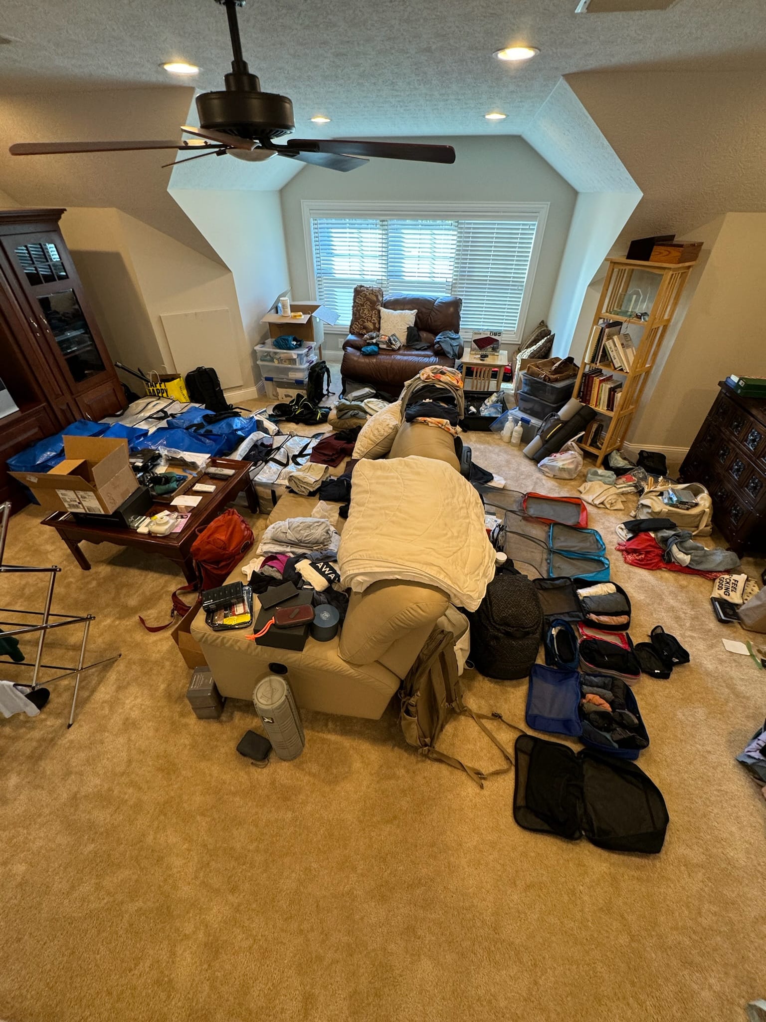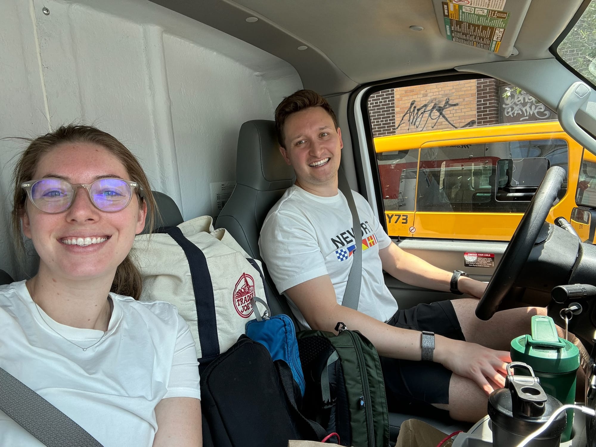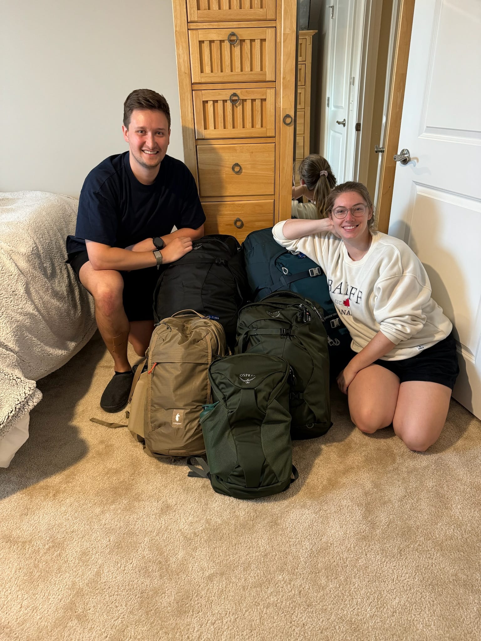 Go to all the doctor appointments before we lost (USA) health insurance, pack up the apartment, find a place to stay in Amsterdam, book Airbnbs in Norway, book car rental, drive a U-Haul through Manhattan, plan a bachelor party, go to a bachelor party, say hi and goodbye to the family... the list of to-dos was greater than the hours we had. Between teeth cleanings and consultations with travel doctors to get a concoction of shots to help us out along our journeys, it was time to pack our apartment and move out.Driving a U-Haul through Manhattan is no joke, especially on a weekday morning through Midtown. Luckily, Makenna didn't have to do any of it :)We had talked about would be great to pack and certainly did our fair share of online shopping, however Makenna only opened her 70 L backpack for the first time while she was in Ohio and Tyler packed from the hours of 10 am - 2 am the night before our flight. We aren't joking when we say we were a bit of a mess. Don't let the smiles fool you, our stuff was everywhere and the bags were loosely packed for our first dry run and the photo op.When it came time for our first official flight, we slept through our morning alarm so it was a quick goodbye before we were off!There was a steep learning to curve to suddenly carrying 40+ lbs on your back and 20+ lbs on the front. "This bag is making me winded, I'm going to sit down" - MakennaAll this to say, a lot has changed between when we first picked up our keys in September 2021......And when we returned our keys in July 2024. One final photo memorializing the paper calendar we used to plan, but mostly just stared at, for 3 months prior to resigning from our jobs. So here we are, under planned, tired, but more importantly, excited for what's next!