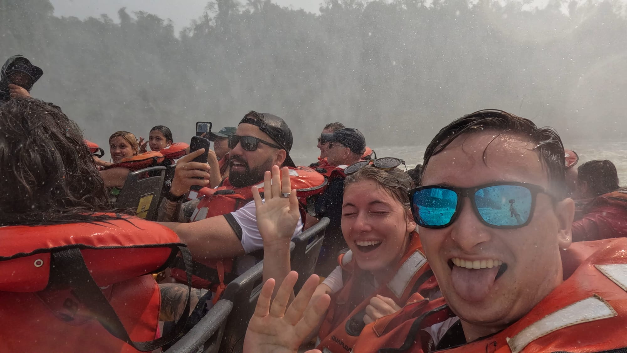 We officially landed in Buenos Aires and it was time to enjoy the street art and explore!Dulche de Leche is probably in Tyler's mom's Top 5 favorite things, so of course we went looking for some.and it wouldn't be Buenos Aires without stumbling along some tango in a town square.We were told La Cabrera was a must, so we grabbed a resy and enjoyed a classic Argentinian steak. We all agreed that the chorizo was the real star of the show!Our next stop: Iguazu FallsWe were lucky enough to stay in the national park. While booking, the hotel mentioned how sneaky the monkeys in the park could be and when we checked in, they reminded us again. With fair warning, we were told that everyday around 5 pm, the monkeys walk along the balconies looking for open doors where they can grab a few snacks from the minibar.Tyler's mom didn't take all the necessary precautions of locking her balcony door, and at 5 pm while we were enjoying the pool, we watched the monkeys walk across the glass and hop into a room. There was a long pause before Makenna skeptically pointed out that those were our rooms. The story ends with a mini bar bill of about $30 and some monkeys enjoying some mixed nuts and a can of coca-cola. We proceeded to watch this each night of our stay, watching in amusement as they raided various rooms.On our first full day in the park we secured a spot on the jet boat tour to go under the waterfalls. It was in this moment that the entire boat crew started putting on a double layer of waterproof gear......and for good reason. In the matter of seconds we were absolutely drenched with the water from the fallsNothing was going to protect us, not even Tyler's hand."Photographic proof that waterfalls release ions that make you happy" - Makenna (a repeated "fact" sourced from her mom)We spent the rest of the afternoon relaxing at the pool and got to spot a toucan flying through the tree canopy. The next day we stayed above water, walking through and admiring the sheer volume of water flowing throughout the falls.And a must for Tyler's parents - a visit to the bird park in Brazil. It was a sad morning when we had to say goodbye after a wonderful time relaxing in Iguazu Falls. Back in Buenos Aires, we had one more day as tourists and of course visited the Camino & MessiA city truly full of color.We ended our time in Argentina with some empanadas that were ~ 1.50 USD. It was fun to watch the owner taking orders and wrapping up boxes of empanadas by the dozen. He noticed our amusement and kindly brought us some flan and dulce de leche which was a perfect way to wrap up our trip.It was time to cross over the Andes on our way to Santiago, Chile. Makenna was thinking about "Society of the Snow" the entire time.