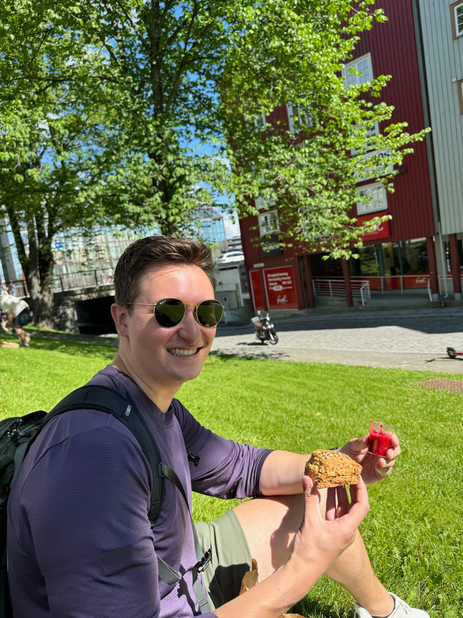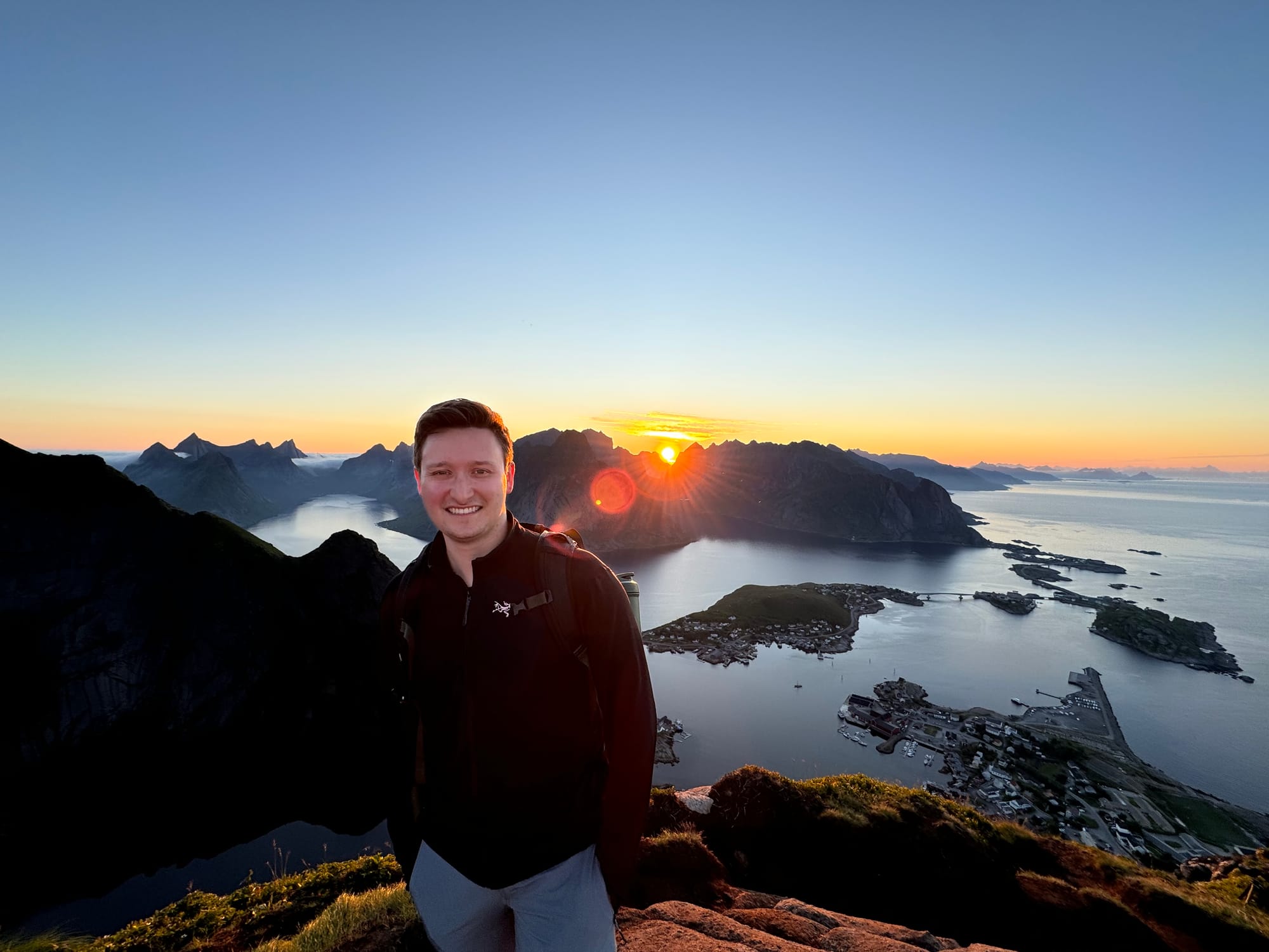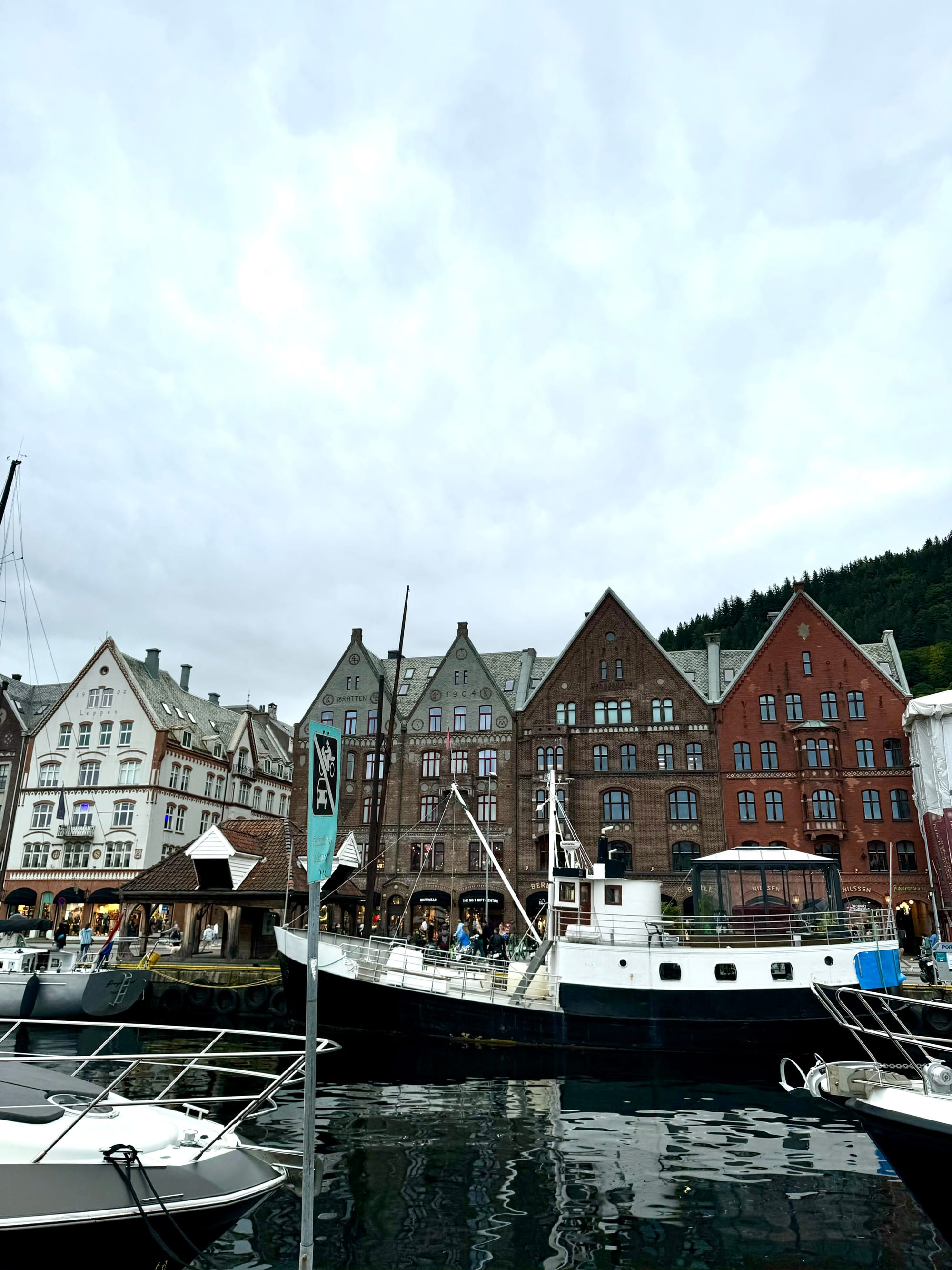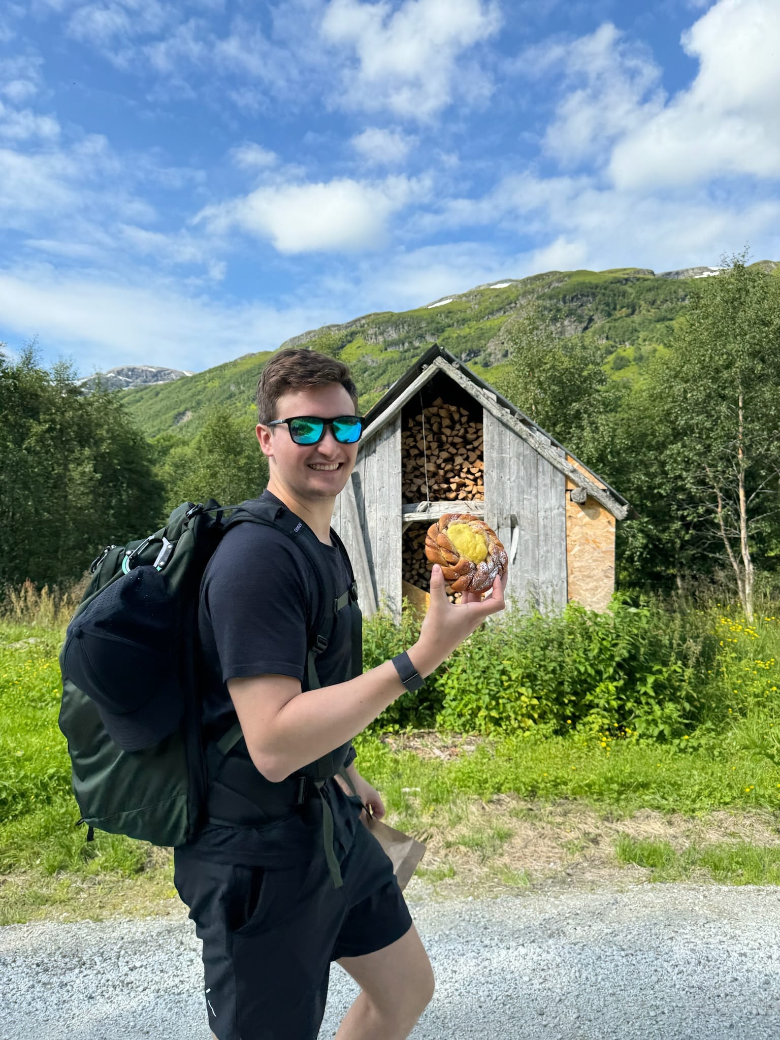 Yes, we have posted this photo multiple times. No, we will never get tired of it. It was a true #ShotOniPhone momentThere was something so special about seeing the clouds creep through the mountains on the left. The sun perfectly center, shining its rays through mountain peaks, and the endless coast line on the rightA moment of peace, beauty, and wonder that captivates you and makes it hard to say goodbye to the Lofoten Islands.It was time for us to journey back to the southern side of Norway...with a few chuckles along the wayTyler was thrilled to find scones in Trondheim.And Makenna started counting waterfalls as we headed out for our 6-day Bergen roadtripBergen was a moody port town, with a seafood market, and very large crabs.We followed the advice of the blogs and got a seafood dinner one night, but unfortunately got seated right behind this crab tank. The eye contact was intense and Makenna's meal was untouched when we left.Our research told us Bakkanosi was a must do hike, and the locals we had mentioned this to agreed. Our research failed to remember the 10.8 miles we would need to hike and the many locals that would pass us along the way.We passed a lot sheep along the way. If anyone thought sheep are nice and cuddly, turns out these Norwegians ones were not. This was captured about 10 seconds before they started charging us and was the last sheep picture taken.Our pre mood hike was high, snacks in hand.But post hike exhaustion was real. Turns out cinnamon rolls don't work as well as protein bars.A much needed sauna to recover from our back to back hikes......and a cold plunge in the fjord